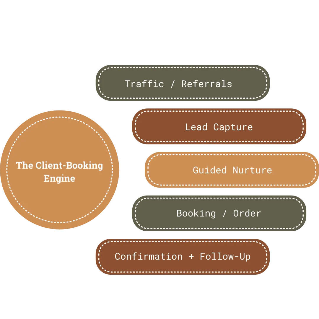 Through that work, I became deeply interested in how systems — not hustle — move people from inquiry to decision. That led me to studying funnel strategy and client booking flows with a focus on clarity, structure, and follow-through.